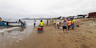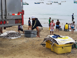 Pour une fois, on sort, un taxi passe mais il est occupé. Va-t-on attendre ? Non, Quelques secondes après un bus passe et l’assistant du chauffeur, debout sur le marche-pied crie « cascada peguche ». C’est donc parti pour un tour en bus. C’est le même trajet que pour aller au marché aux bestiaux.